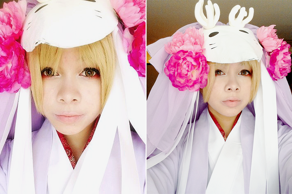 Obligatory makeup selfie heeeeeeeeeee! I’m so so so so so proud of my costume guh ;~; So much TLC! The costume was ridiculously easy to put on, so I got done in no time hehe. Really hard to walk in though, cause the kimono is super tight….. so I shuffled around….
