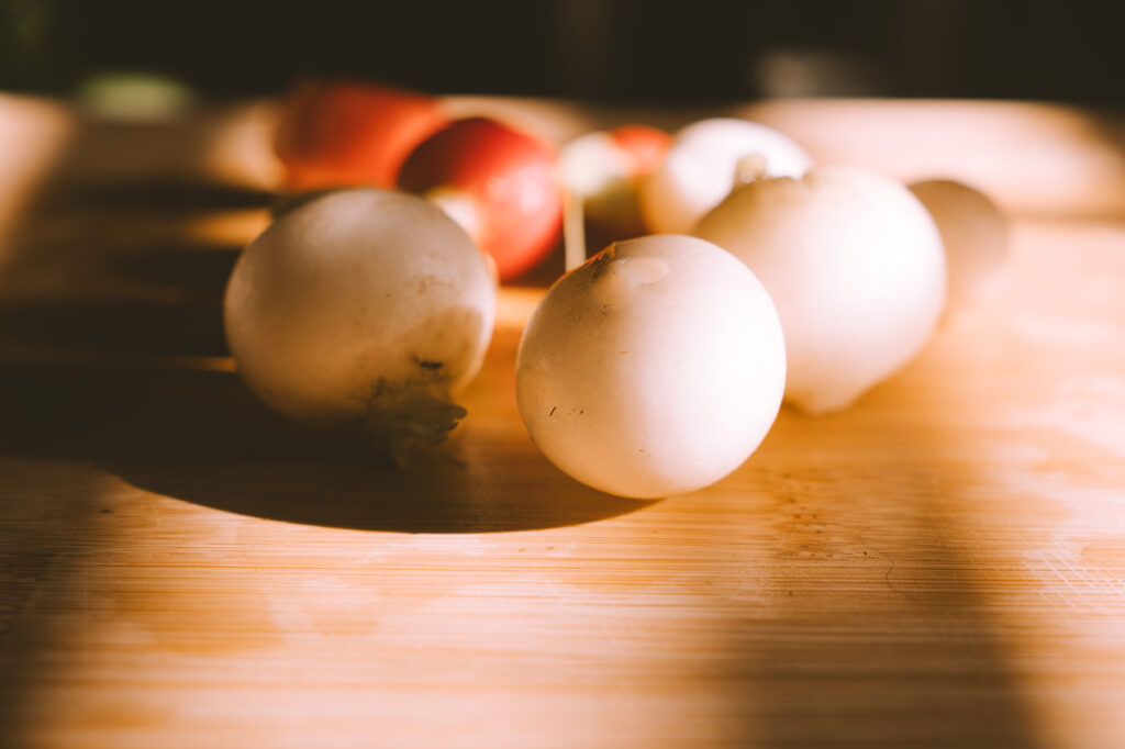 One of the funniest things I learned is that people say they’re ready to harvest when you can see their “shoulders” peeking out of the soil. The imagery of radish shoulders was perfect, though, because I knew exactly what to look for!!