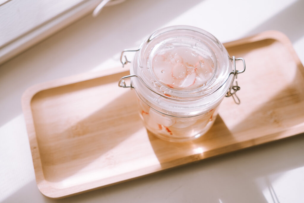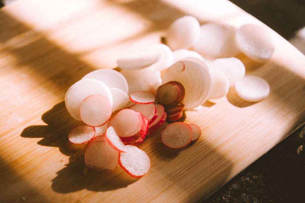 Since this is a small batch of radishes, and I really only eat radishes when they’re pickled or in soups, I decided to test out the former! I did equal amounts rice vinegar, sugar, and water with a pinch of salt.