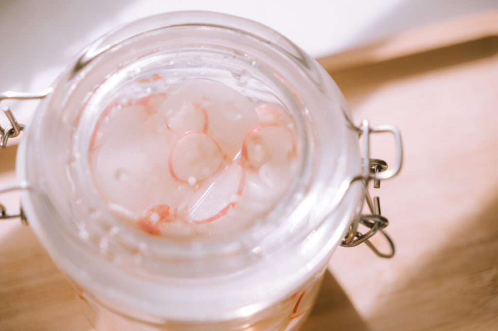 In any case, the radishes are in the jar, and now we wait!