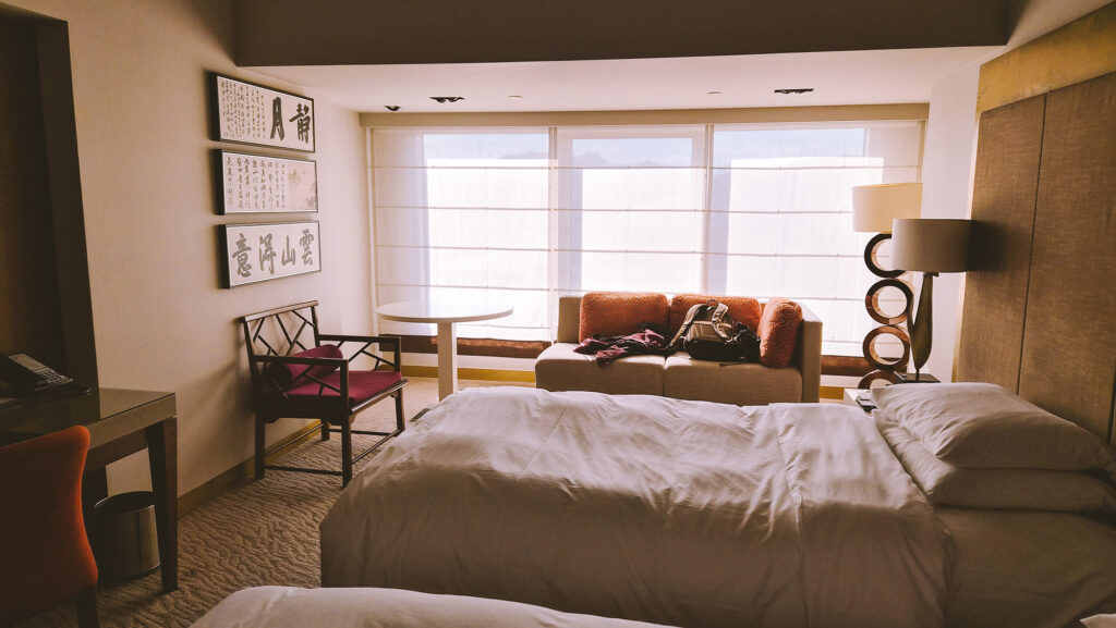 It was about 40-50 minutes to our hotel — Christmas decorations were everywhere! We stayed at the Grand Hyatt Taipei, and the lobby reminded me a bit of the Hyatt Regency Tokyo. Once again, not an #ad, but being able to pay for international stays just by using points is so, so nice.